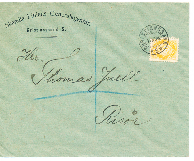 | 281 | K | Postkort med Ravnedalen sendt fra Kristiansand til England i | 100 | ||