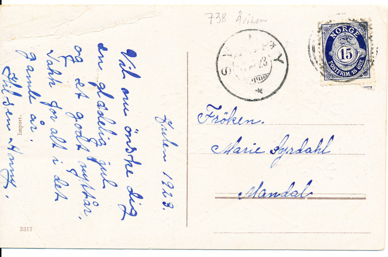 | 1 julekort pent stemplet Nordre Bjørnsund 21/12-31 | |||||