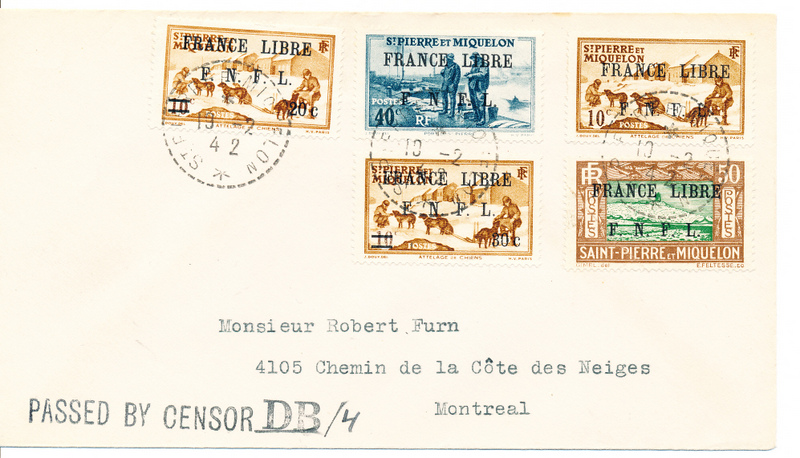| 221 | St.Pierre et Miguelon Overtrykksmerker fra 1941/42 på sensurert | 100 | |||