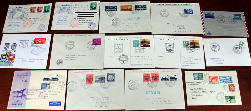| 250 | Lot 14 stk FFC forskjellige førsteflygings konvolutter 1951-80 | Aune 600 | 100 | ||
