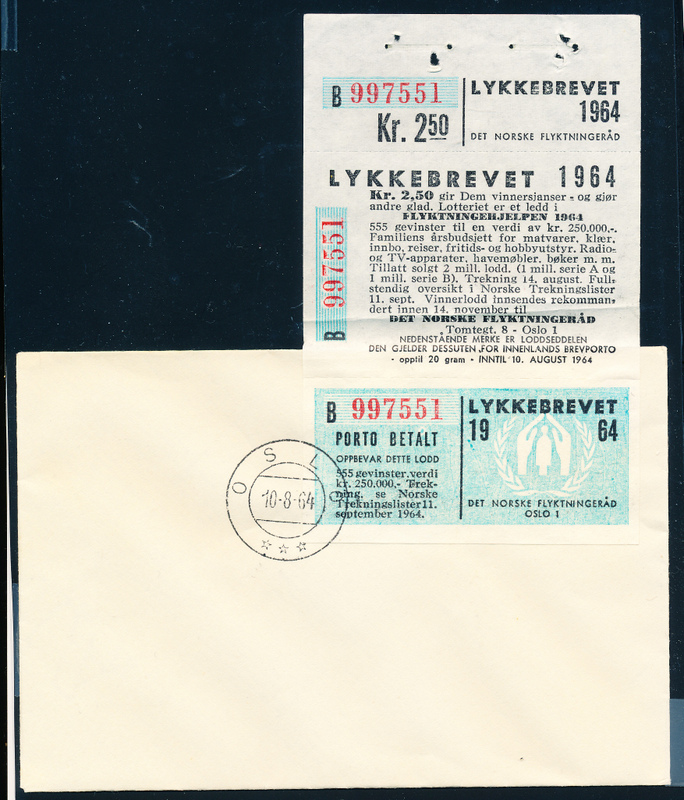 | 256 | st | Lykkebrevet 3 talonger på konvolutt st Oslo 10/8-64 | 1300 | 400 | |