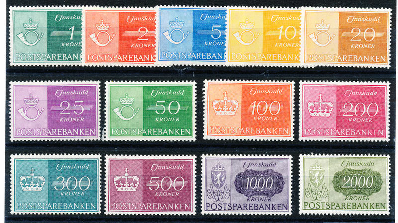 | 257 | ** | Lot 13 stk forskjellige ** Innskuddsmerker fra Postsparebanken | 250 | ||