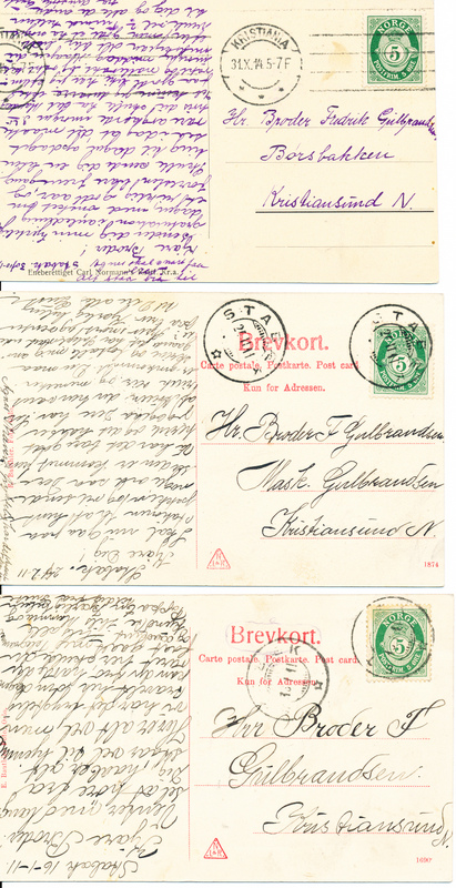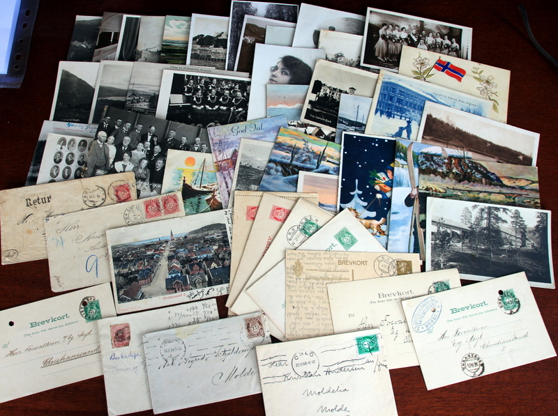 | gml sider fra et album. gml helsaker,kort, og brev og klipp. | |||||