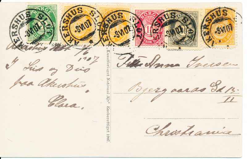 | 280 | K | Postkort Livlig frankert NK 75,76,77 og 81 og stemplet | 100 | ||