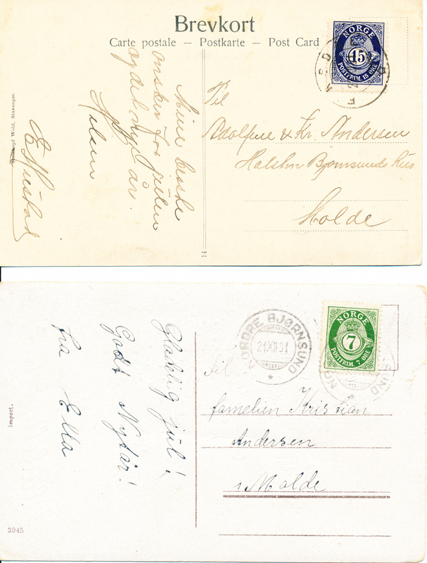 | 1 julekort pent stemplet Nordre Bjørnsund 21/12-31 | |||||