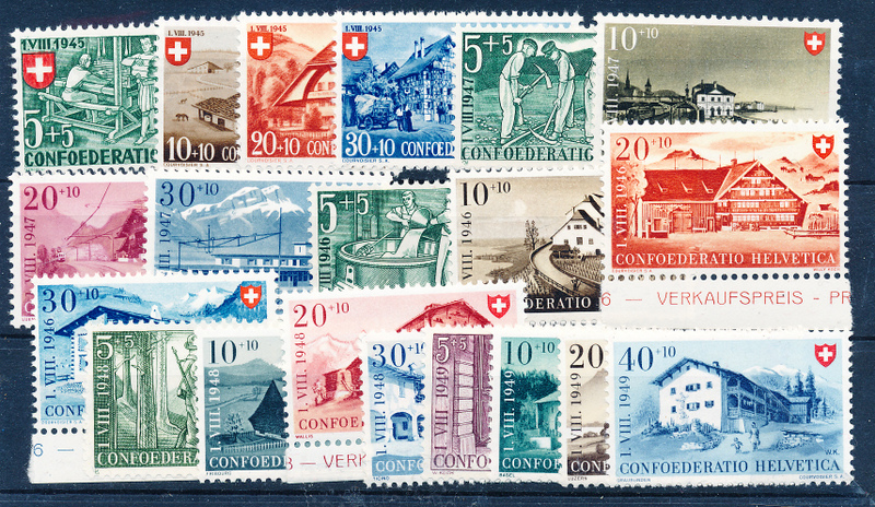 | 058 | ** | Pro Patria 1945-49 komplette postfriske serier | 508 | 75 | |